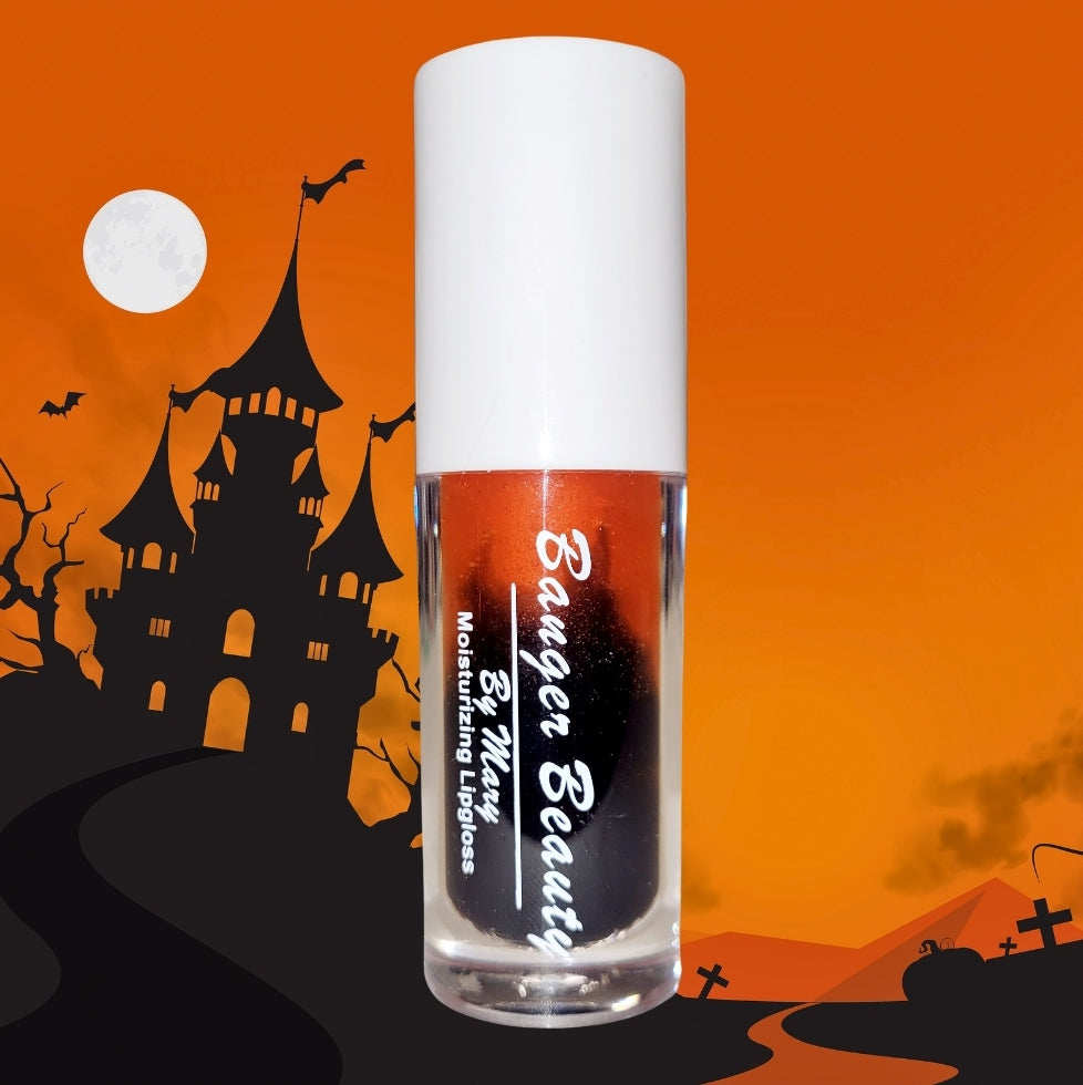 This striking two toned gloss swirls orange and black for a classic Halloween look. She embodies everything Halloween! Candy Corn scent! 🎃